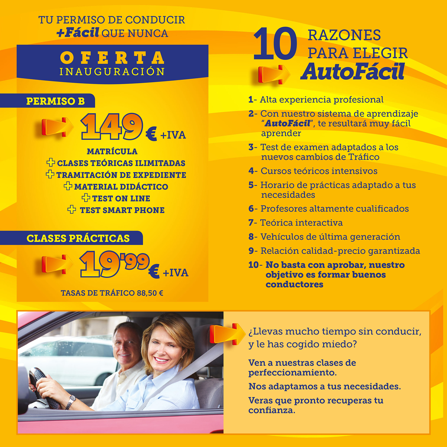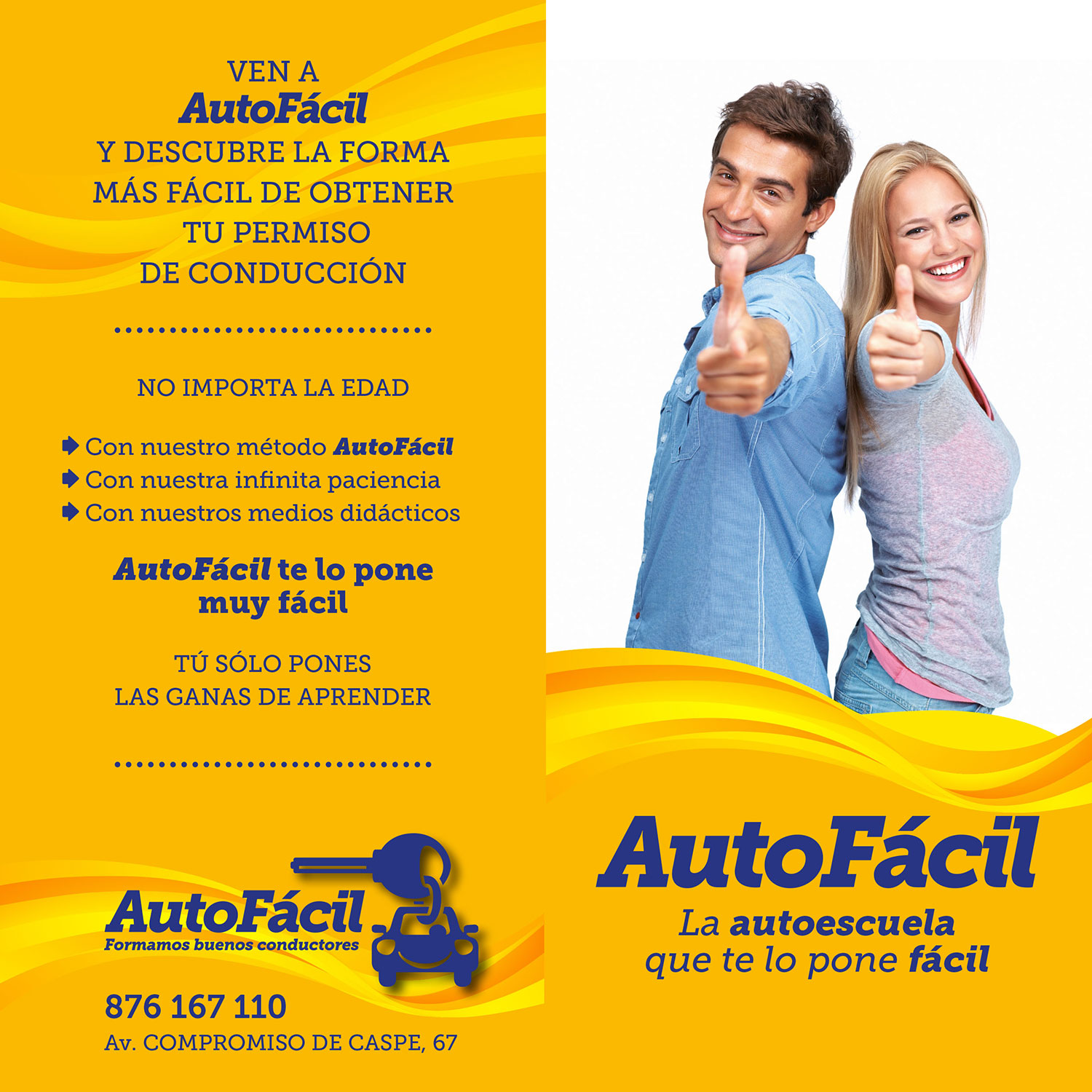 La propuesta se apoyó en una promesa simple y directa: aprender a conducir de una forma más fácil, accesible y confiable. Esa idea se trasladó tanto al nombre como al tono general de la comunicación, al eslogan y a una gráfica de gran notoriedad, pensada para captar atención de forma inmediata y reforzar la recordación de marca. El díptico corporativo recoge ese enfoque con mensajes como “la autoescuela que te lo pone fácil”, una oferta muy visible y argumentos comerciales centrados en experiencia, flexibilidad, medios didácticos y formación de buenos conductores.