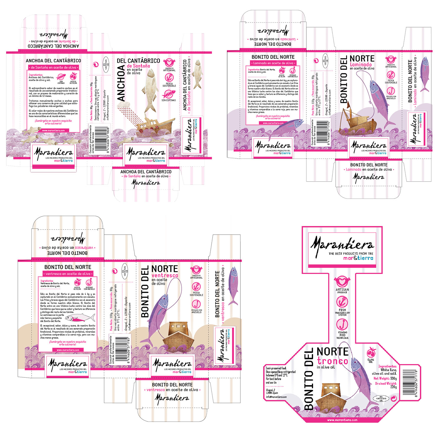 Proyecto de branding integral para Marantiera, una marca de productos gourmet concebida para trasladar al mercado del Reino Unido una propuesta basada en la calidad de los productos españoles y en la combinación simbólica de dos territorios de sabor: el mar y la tierra. El trabajo comenzó con la definición del naming, buscando una solución con personalidad, fácil dicción en inglés y capacidad para conservar la evocación de su origen. Así nació Marantiera, un nombre sonoro, distintivo y memorable, pensado para funcionar con naturalidad en el mercado anglosajón sin perder su raíz mediterránea.